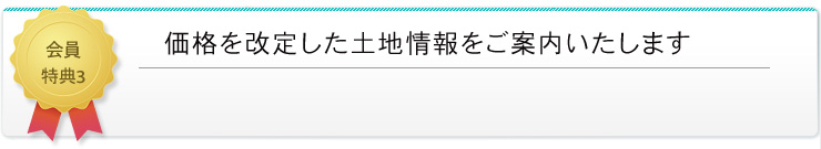 値段が下がった土地情報はホームページに掲載する前に会員様に優先的にご案内いたします。